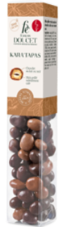 Maïs grillé croquant et subtilement salé, enrobé d’une fine couche de chocolat noir ou lait.